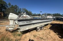 Description: This is a 1990 24' Sea Ark Transporter. Powered by a 115 HP Evinrude. Vin Number SAMA0163F090. This boat is big and roomy for her size. This boat is designed to operate in shallow water with a heavy load. This boat would most likely need to be repowered. The dual axle trailer is included in the sale of the vessel. For additional information regarding this vessel please call 1-833-645-2628. Please refence vessel 439