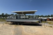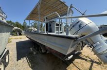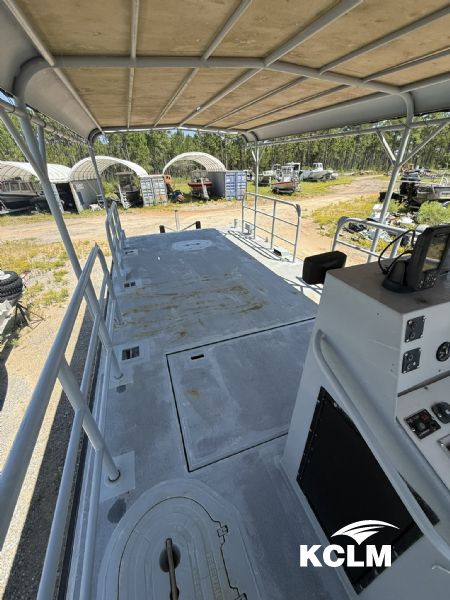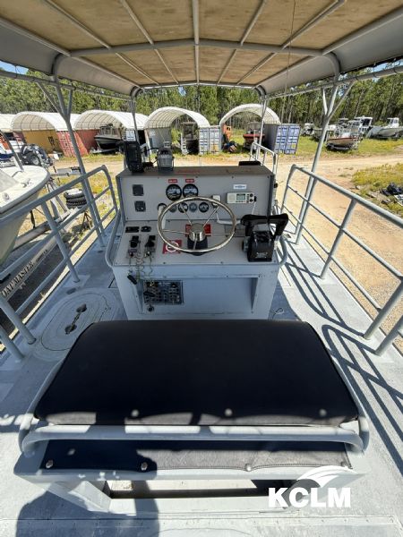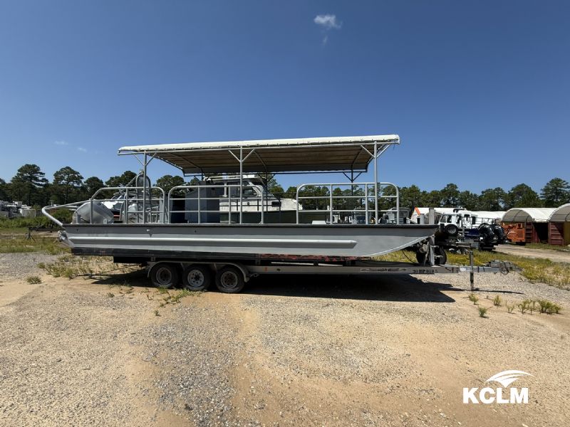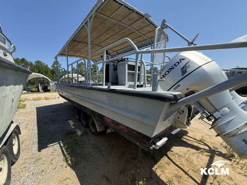 Description: This is a 2001 Sea Ark 30ft work barge. Twin Honda four stroke motors. Low hours starb. 30 hours port 600hrs. Barge is very good condition with no signs of corrosion throughout the hull or topside. A full removable canopy as well as railings offer shade and secure transport. A duel axle trailer is included with the sale of the vessel. This vessel has been serviced and is ready to go.