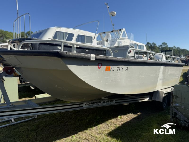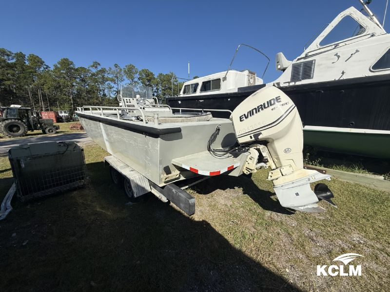 Description: This is a very nice turn key 21 Sea ark Roustabout. Hull Number SAMA0868F797. Inventory code 422. Powered by a single 2010 Evinrude 200 with 1446 hours. This vessel is very large and spacious for it size and is one of the most stable semi V workboats on the market. This vessel comes with a dual axle trailer.